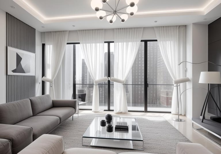 Un salon confortable idéal pour se détendre après une longue journée, avec des finitions modernes et chaleureuses.